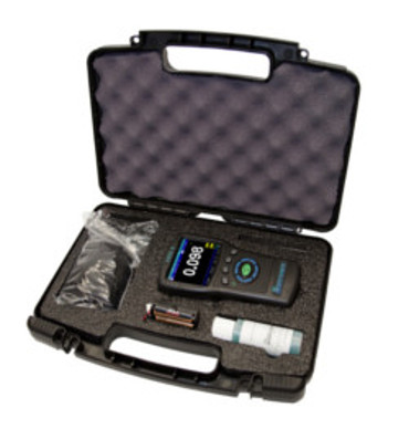 Hand-Held Digital Ultrasonic thickness gage with 3.5" Sunlight Readable Color Display for thickness only including: Echo to Echo Software, Plastic Carrying Case, 2 Oz. bottle of couplant, Re-Chargeable Li-Ion batteries, Instruction manual and DKS537, 5MHz x .375" diameter Transducer with potted cable, Charger adapter with USB cable and data xl interface program