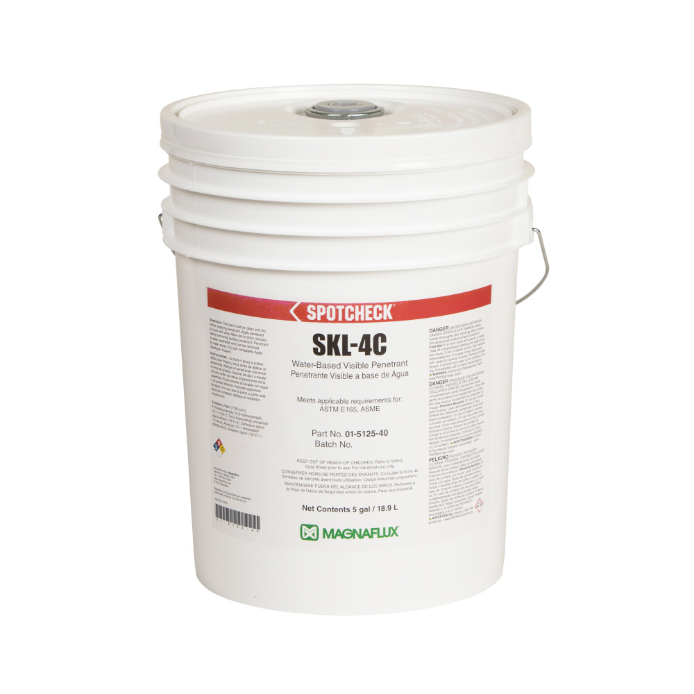 Spotcheck® SKC-S is a non-halogenated material used in the liquid penetrant inspection process. SKC-S is used on a moist cloth to remove surface penetrant from the inspection area prior to applying developer.