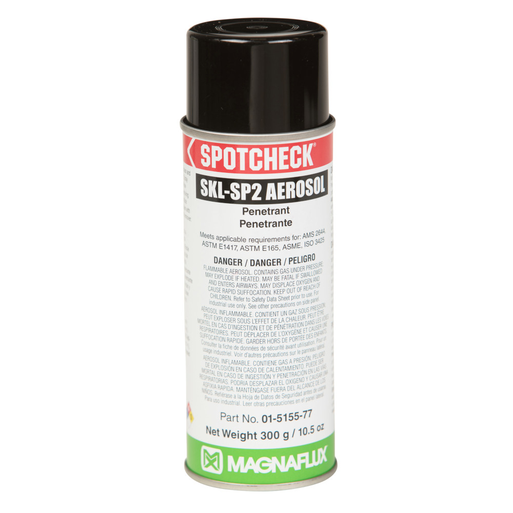 Spotcheck® SKC-S is a non-halogenated material used in the penetrant inspection process.