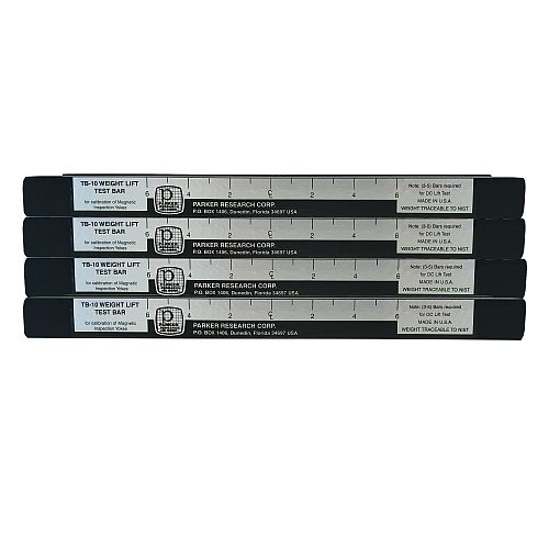 Set of 4 10 Lb Lift Bars provides for the calibration and certification of Magnetic Particle Inspection Yokes (Bolt is supplied to bolt all 4 together to perform a 40 Lb lift test). Bar weight is stamped on each bar and is traceable to NIST.